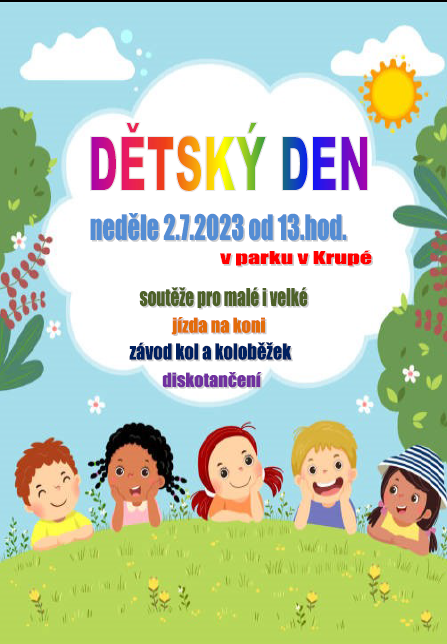 Zveme všechny děti i rodiče na DĚTSKÝ DEN , který se koná 2.7.2023 od 13.hod