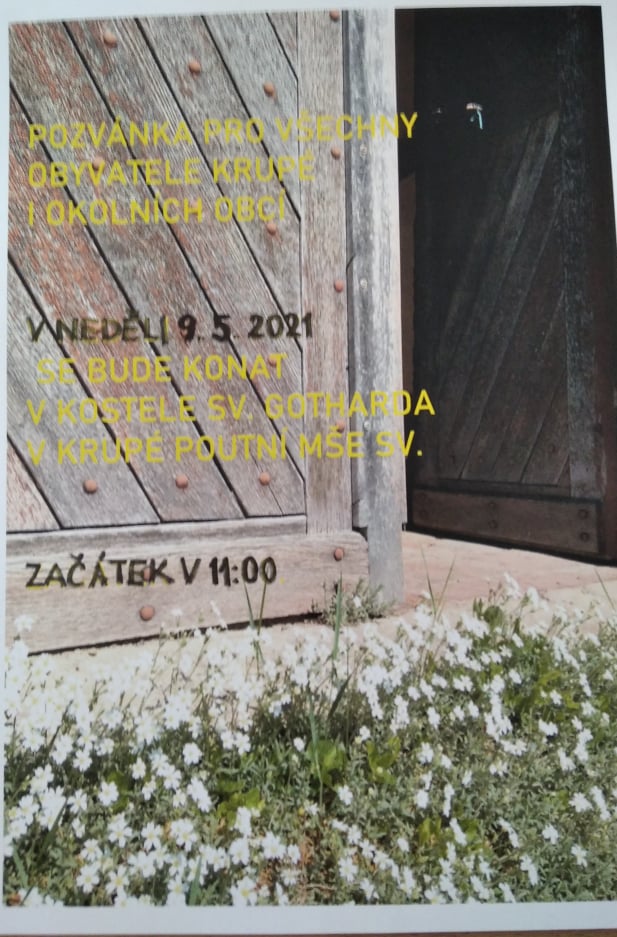 V neděli 9. května 2021 od 11:00 hodin se koná v kostele sv. Gotharda POUTNÍ MŠE SVATÁ.Srdečně zveme všechny občany